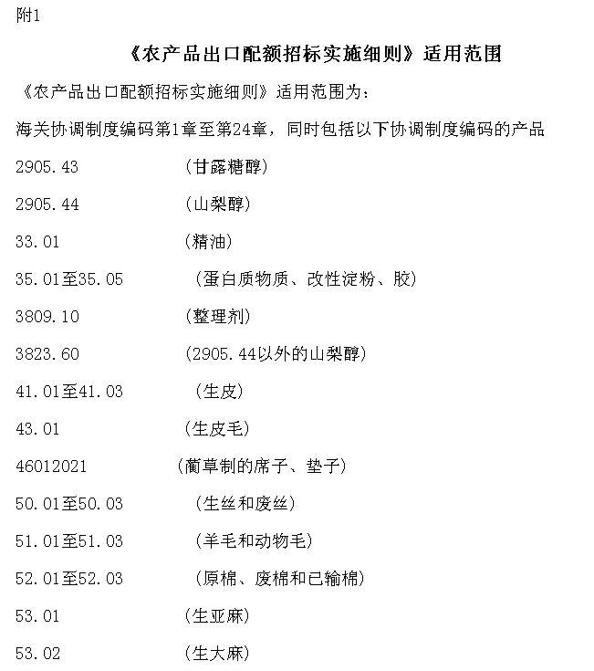 《农产品出口配额招标实施细则》适用范围