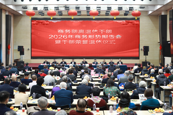 商务部举行离退休干部2026年商务形势报告会暨干部荣誉退休仪式