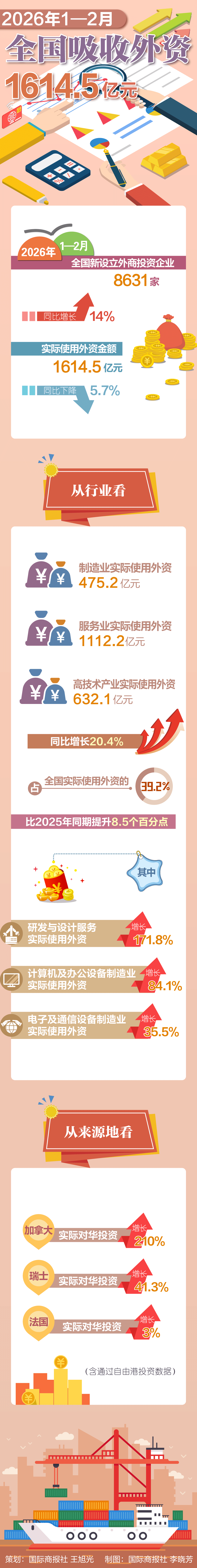 2026年1—2月全国吸收外资1614.5亿元