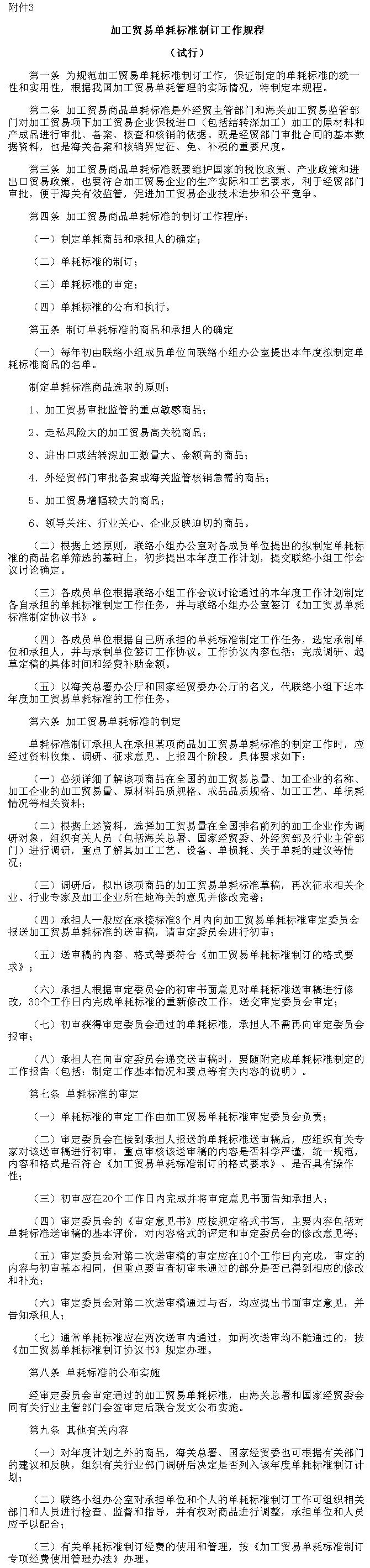 3.加工贸易单耗标准制订工作规程(试行)