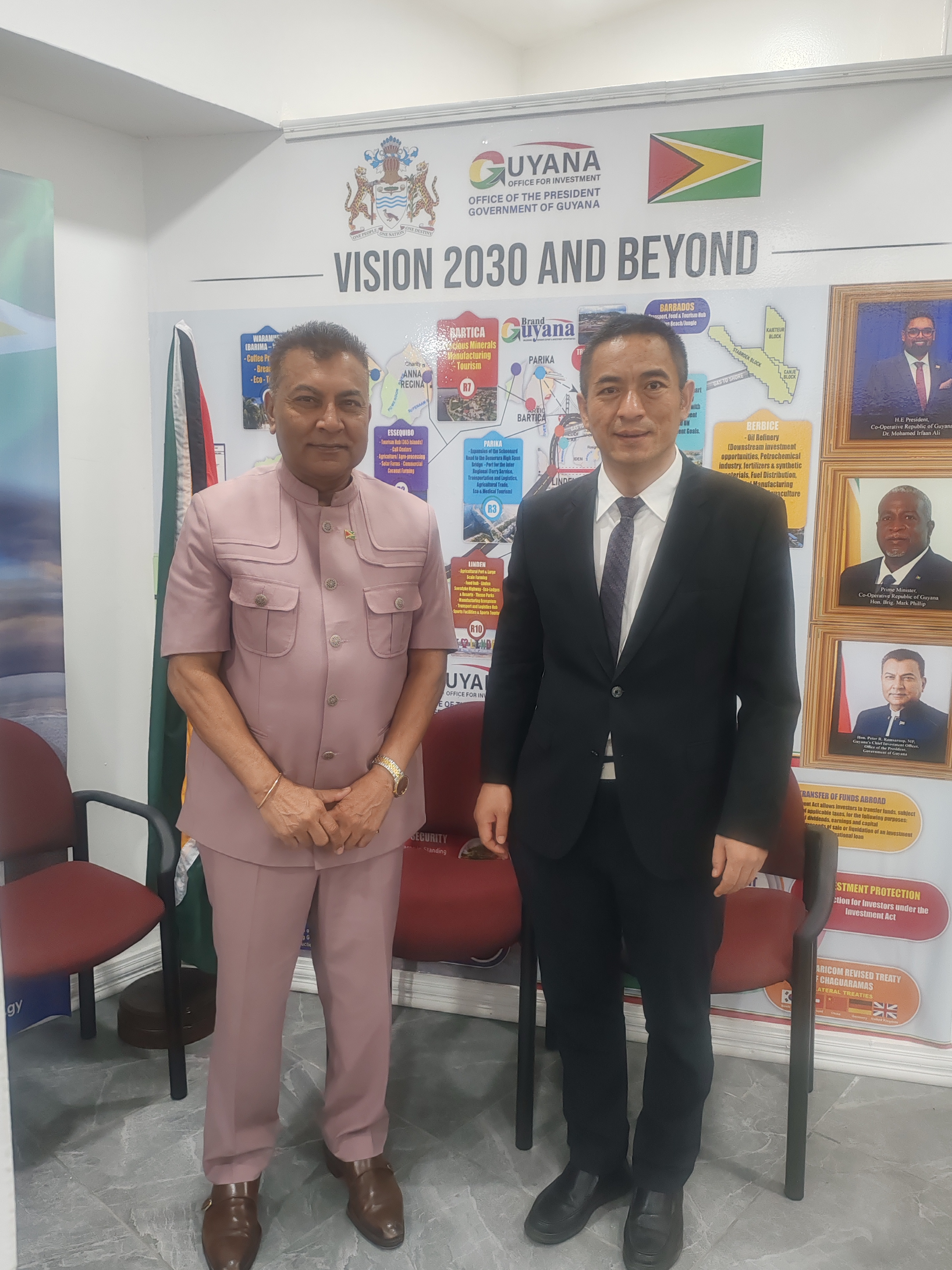 1月8日,李汉清参赞会见圭亚那投资促进办公室首席执行官拉姆萨鲁普,双方围绕中圭经贸合作进行交流。