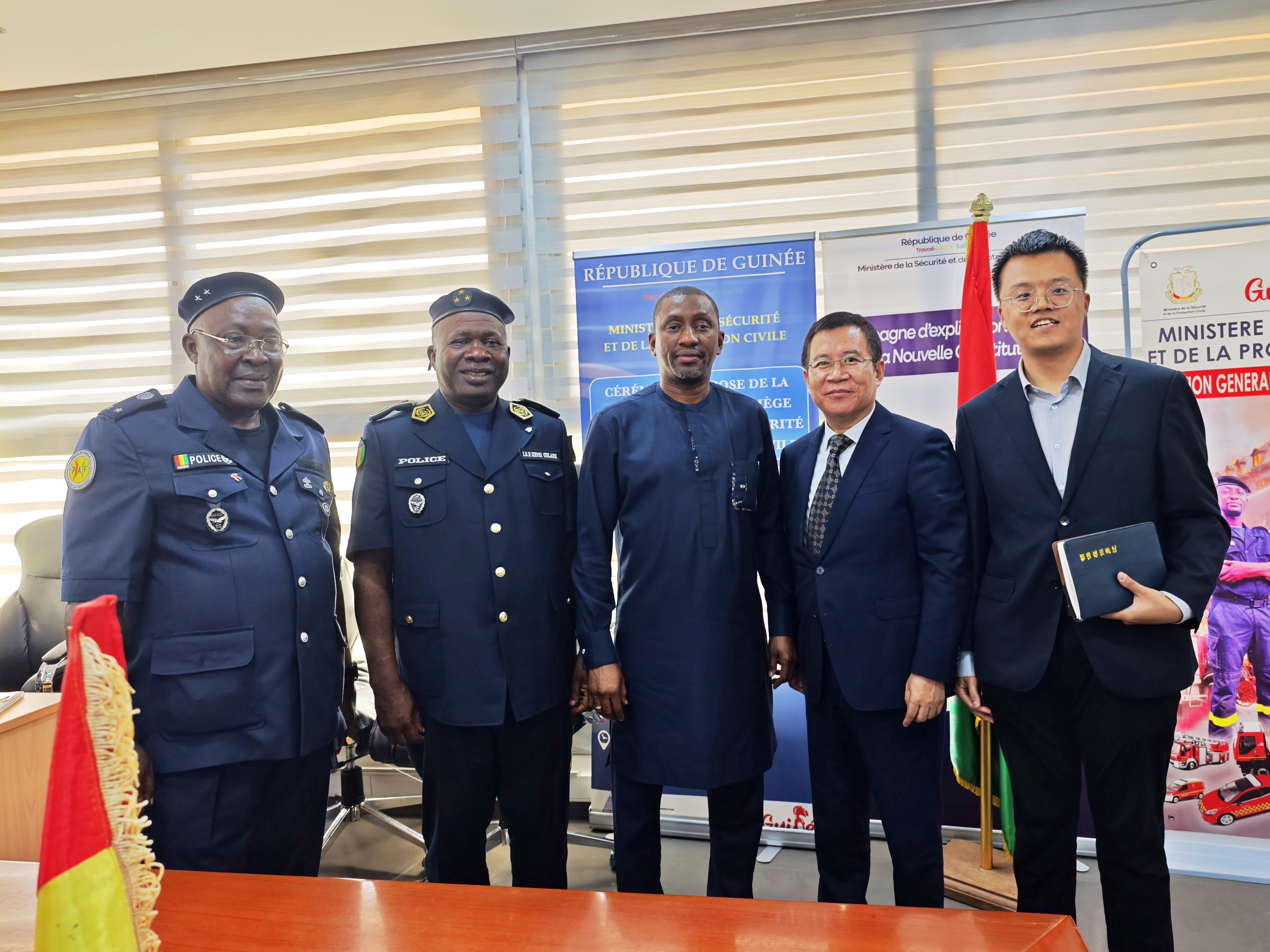 1月13日,王晖参赞会见几内亚安全和民事保护部秘书长凯塔(Moustapha Kobélé KEITA),双方就警务合作和我在几项目和人员保护进行深入交流。几安全和民事保护部办公厅主任乌拉雷(Kémo OULARE)和移民警察局局长迪亚雷(Mohamed Layba DIARE)在座。