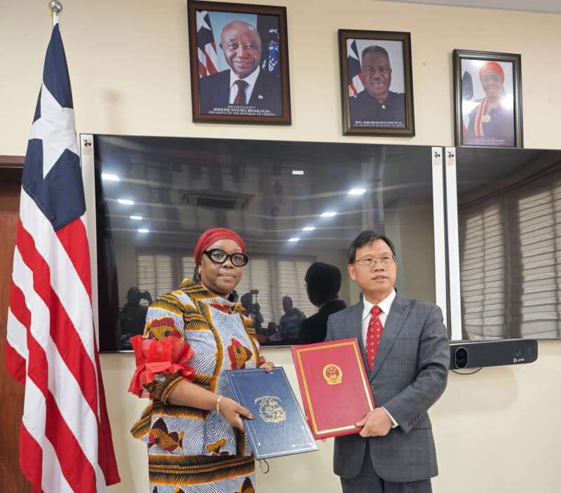 1月9日,驻利比里亚大使尹承武与利外交部长尼安蒂分别代表两国政府于利首都蒙罗维亚签署发展合作协定。利代财长梅尔斯、外交部领导成员等参加签署仪式。