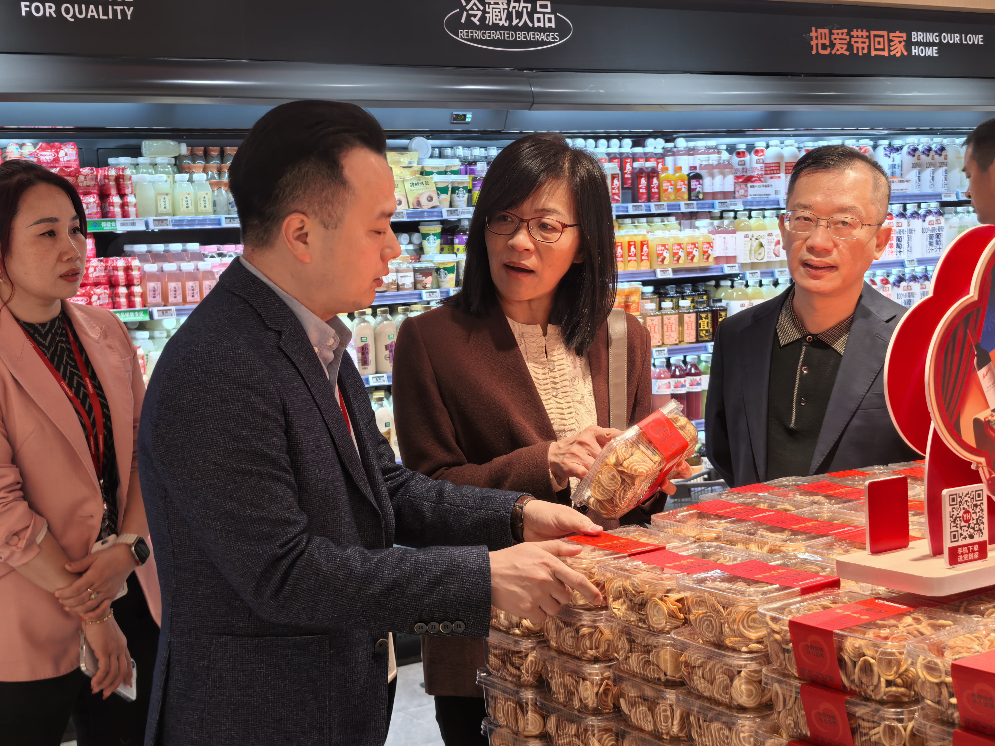 2月11日,广州特办尹虹特派员赴广州海珠区永辉超市(胖东来模式门店)、白云区江南果菜批发市场,调研春节生活必需品市场保供情况。广州市商务局负责同志一同参加调研。