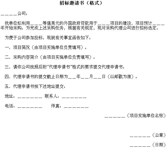四、收到招标邀请书的采购公司应按照代理申请书格式的要求,提交代理申请书(见附件二)。代理申请书密封后按招标邀请书中规定的时间和地址提交。采购公司提交的代理申请书要有公司总经理或副总经理的签字,并加盖公司公章。