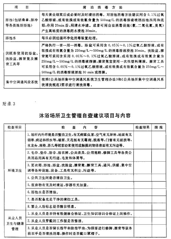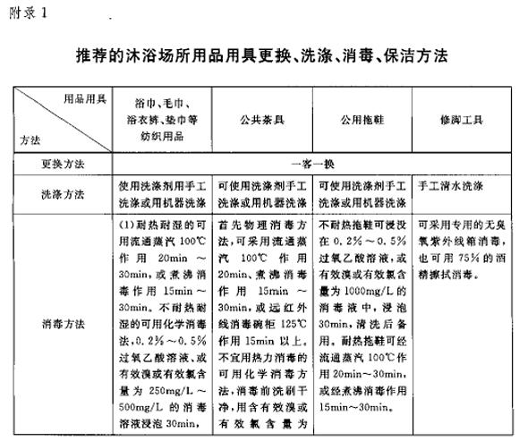 (一)沐浴场所经营者应当按照本规范有关要求,依据《推荐的沐浴场所用品用具更换、洗涤、消毒、保洁方法》(附录1)和《推荐的沐浴场所及设施、设备、工具清洁消毒方法》(附录2),制定本场所具体的卫生操作规程。