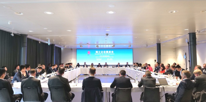 4月17日,瑞士企业圆桌会在伯尔尼举行。商务部副部长兼国际贸易谈判副代表凌激主持,中国驻瑞士使馆大使钱敏坚致辞。艾曼斯、医沛生、瑞银、雀巢、诺华、嘉能可、索诺瓦等25家企业和瑞中经济协会代表参会。