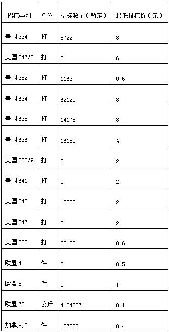 注:1、上表公布的招标数量是暂定量,如有因企业未交纳2004年度纺织品被动配额第七次公开招标中标金而被收回的数量,招标委员会将另行公告。