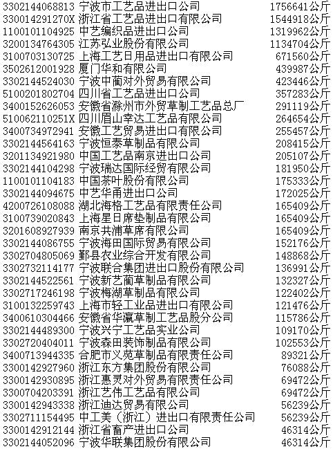 2003年蔺草第一次协议招标初步中标结果