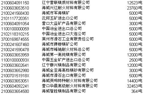 2003年轻(重)烧镁第一次公开招标正式中标结果