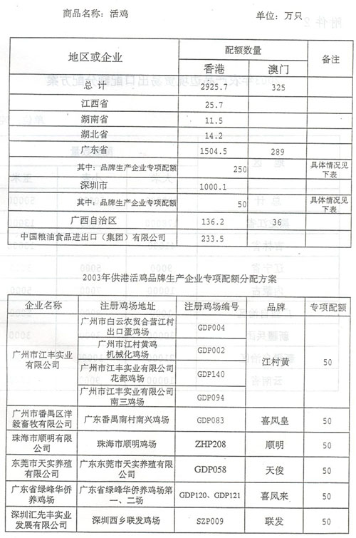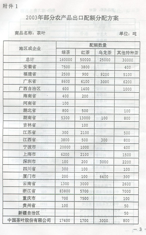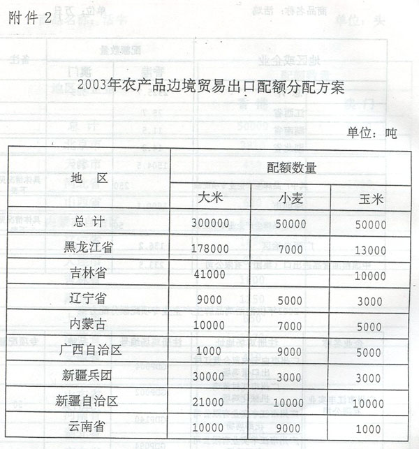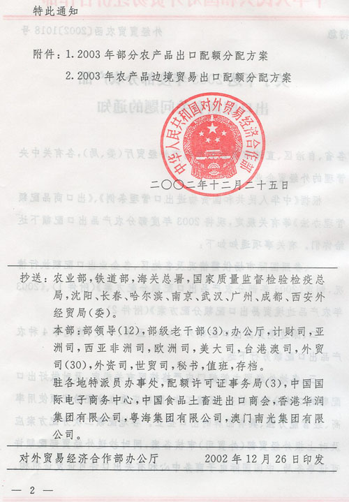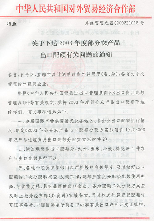 关于下达2003年度部分农产品出口配额有关问题的通知