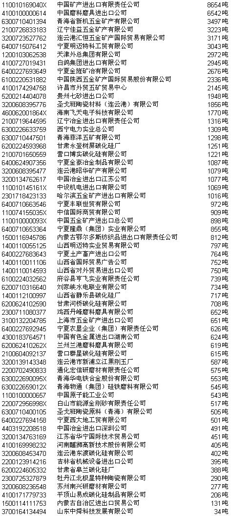 2003年碳化硅第一次协议招标正式中标结果