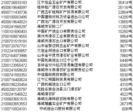 2003年滑石块(粉)第一次协议招标正式中标结果