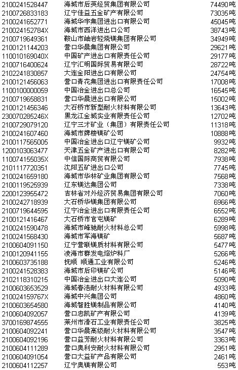 2003年轻(重)烧镁第一次协议招标正式中标结果