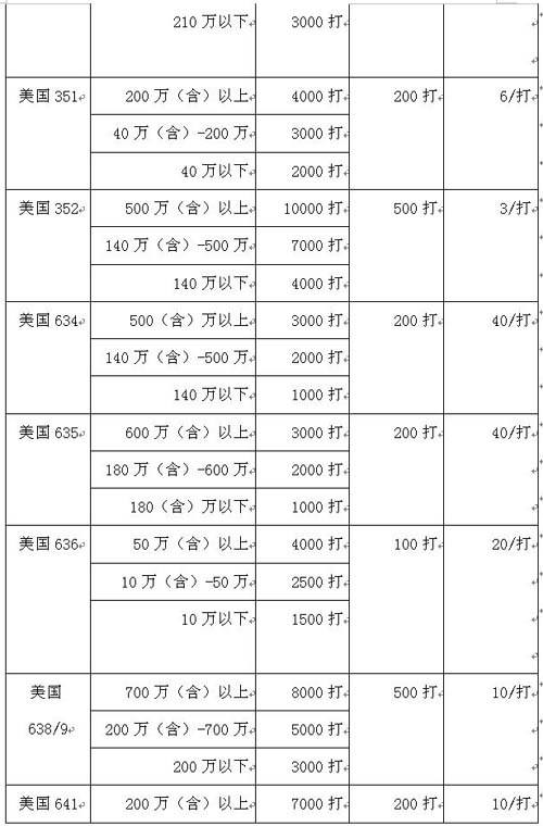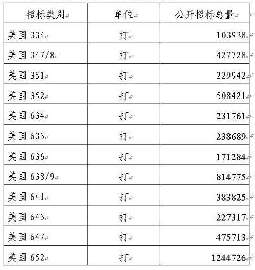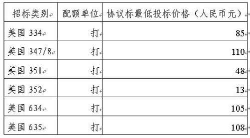 (二)协议招标:受招标委员会委托,纺配招标办公室通过征求专家、企业意见等方式在协议招标前为各类别分别确定一个统一最低投标价格,具体价格如下: