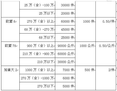 (三)按照《纺织品被动配额管理办法》的有关规定,招标类别工业家配额使用价格为协议招标价格。 七、评标规则 公开招标仍采取“价格优先”的竞争性评标规则,具体规定请见《办法》及《细则》。招标委员会有权将明显背离正常价格水平的标书作为废标处理。 协议招标企业不低于招标委员会确定的最低投标价格投标均可中标。 八、中标保证金: (一)公开招标 公开招标各批次各类别中标价格最高的10%的企业中标保证金为中标金的100%,其余中标企业的中标保证金比例为30%。中标企业须在规定时间内将中标保证金以支票、汇票、汇款等方式汇到指定银行帐户(开户行:中信实业银行北京东单支行;户名:中国纺织品进出口商会;帐号:7112410182600001557。),同时利用纺配电子招标系统将电子交款凭证发送至中国纺织品进出口商会财务部(联系电话:010-67739343;传真:010-67719214、67739206、67739204)。 中标企业必须将同一招标批次的各类别中标配额的中标保证金一次性交齐,不允许中标企业放弃部分中标类别的配额,而只缴纳部分中标类别配额的中标保证金。对未按规定将某招标批次全部中标类别配额中标保证金汇到指定帐户或汇款不足的企业,招标委员会将取消其该招标批次所有中标类别的中标配额和所有中标类别的投标资格。(包括协议招标和公开招标) 中标企业须于2003年12月12日之前将2004年第一次公开招标中标保证金汇至指定银行帐户。 (二)协议招标 协议招标中标保证金的比例为中标金总金额的30%(即中标保证金=协议标确认中标数量×协议标价格×30%)。具体交款方式和银行帐户等与第八条第(一)款中所列公开招标相同。对逾期未缴纳或未能足额缴纳某类别中标保证金的企业,招标委员会将取消其相应类别当年中标数量以及投标资格。(包括协议招标和公开招标) 各中标企业须于2003年12月12日之前将2004年协议招标中标保证金汇至指定银行帐户。 中标企业在填写中标保证金电子交款凭证时必须注明是第一次公开招标或协议招标,以避免中标保证金帐目混乱。 九、其他事项按照《办法》及其《细则》的有关规定执行。 十、纺织品配额招标办公室地址:北京市朝阳区潘家园南里12号楼7层。 电话:010 - 67739327、67739208 传真:010- 67719297、67739204、67739206 十一、中国国际电子商务中心联系电话: 电话:010-67800472,67800334,67800365,67800045,67800385,67900369 传真:010-67800343