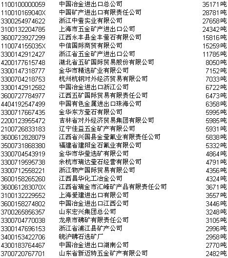 2003年氟石块(粉)第一次协议招标正式中标结果