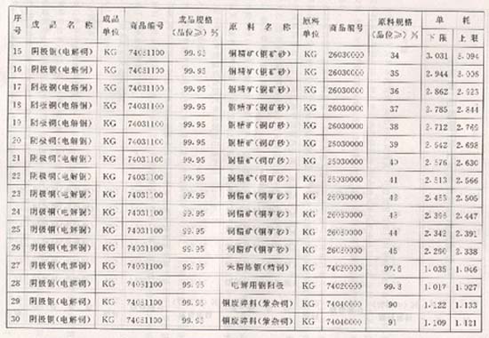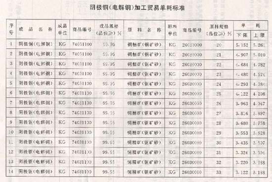 根据2000年《中华人民共和国海关进出口税则》,阴极铜是出口征税商品,因此,在标准中规定单耗的上下限。