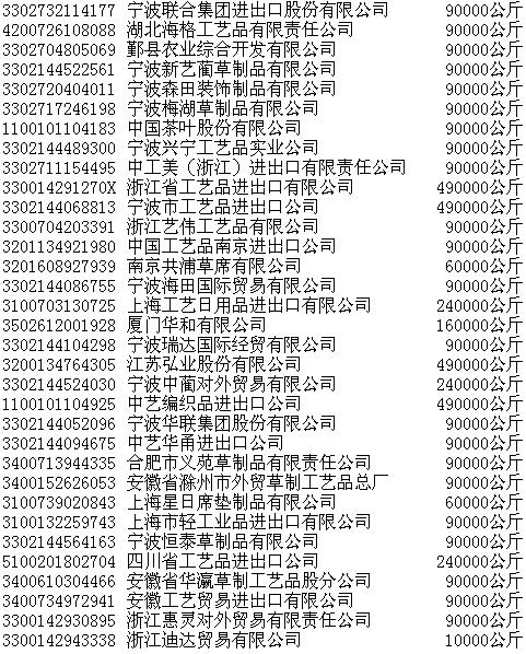 2003年蔺草第一次公开招标正式中标结果