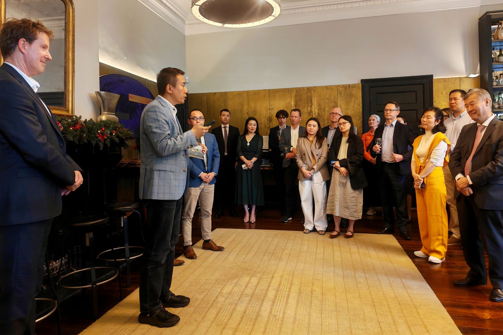王程光在致辞中表示,新中贸易协会老会长潘西佛早在1957年就克服重重阻力参加广交会,打破两国贸易坚冰。2026年,中国将开始实施“十五五”规划,进一步扩大高水平对外开放,开创合作共赢新局面;该协会也将庆祝成立45周年。希望该协会会员秉持“破冰”“探路”精神,展现更大作为,为中新友好添砖加瓦。