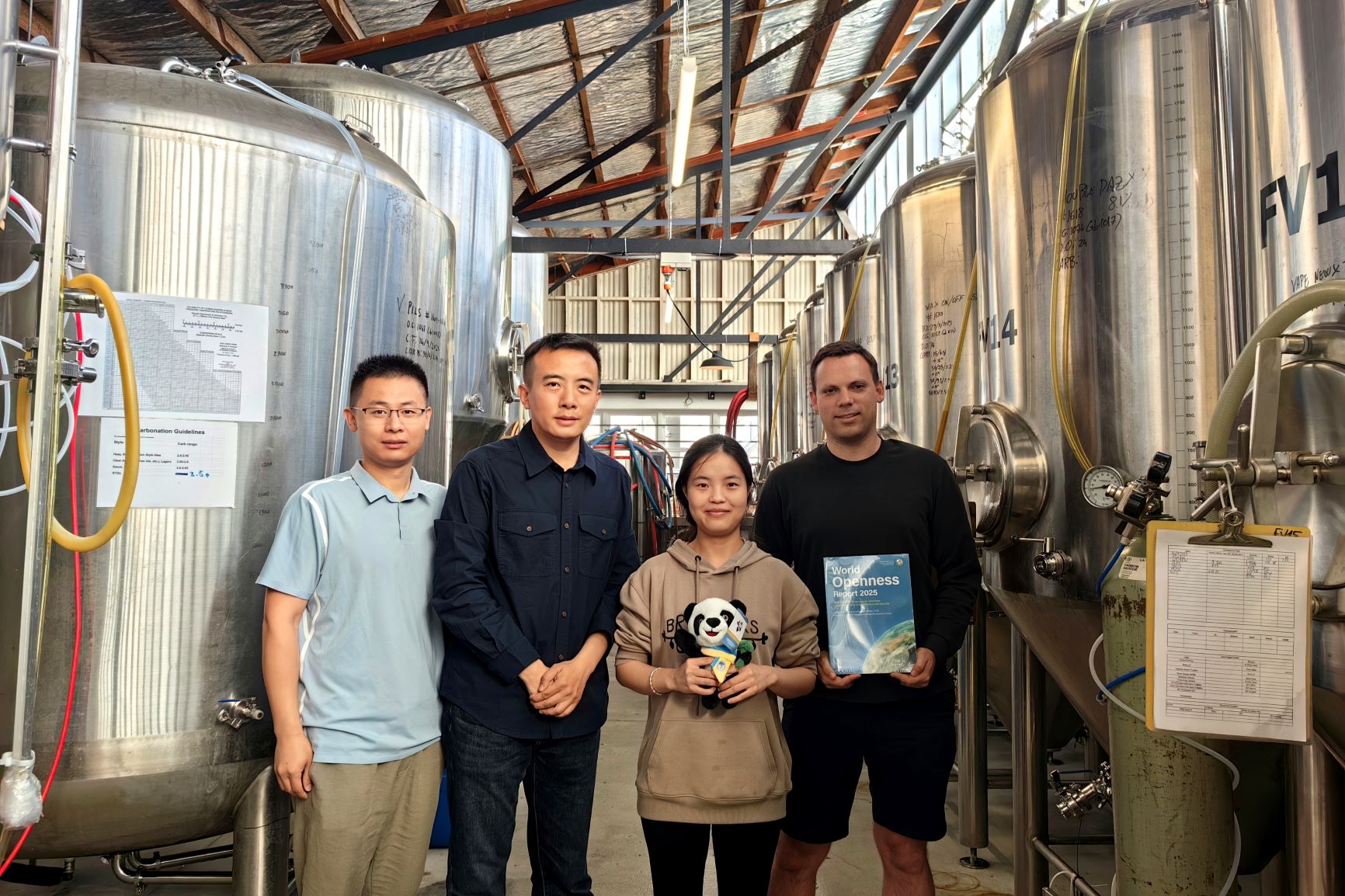 12月20日,驻奥克兰总领馆经商处主任王程光领事会见新西兰中国商业圆桌会(NZBRiC)执行董事尼克·卡尔德,并共同参访新西兰奇异兄弟啤酒(Brothers Beer)厂。