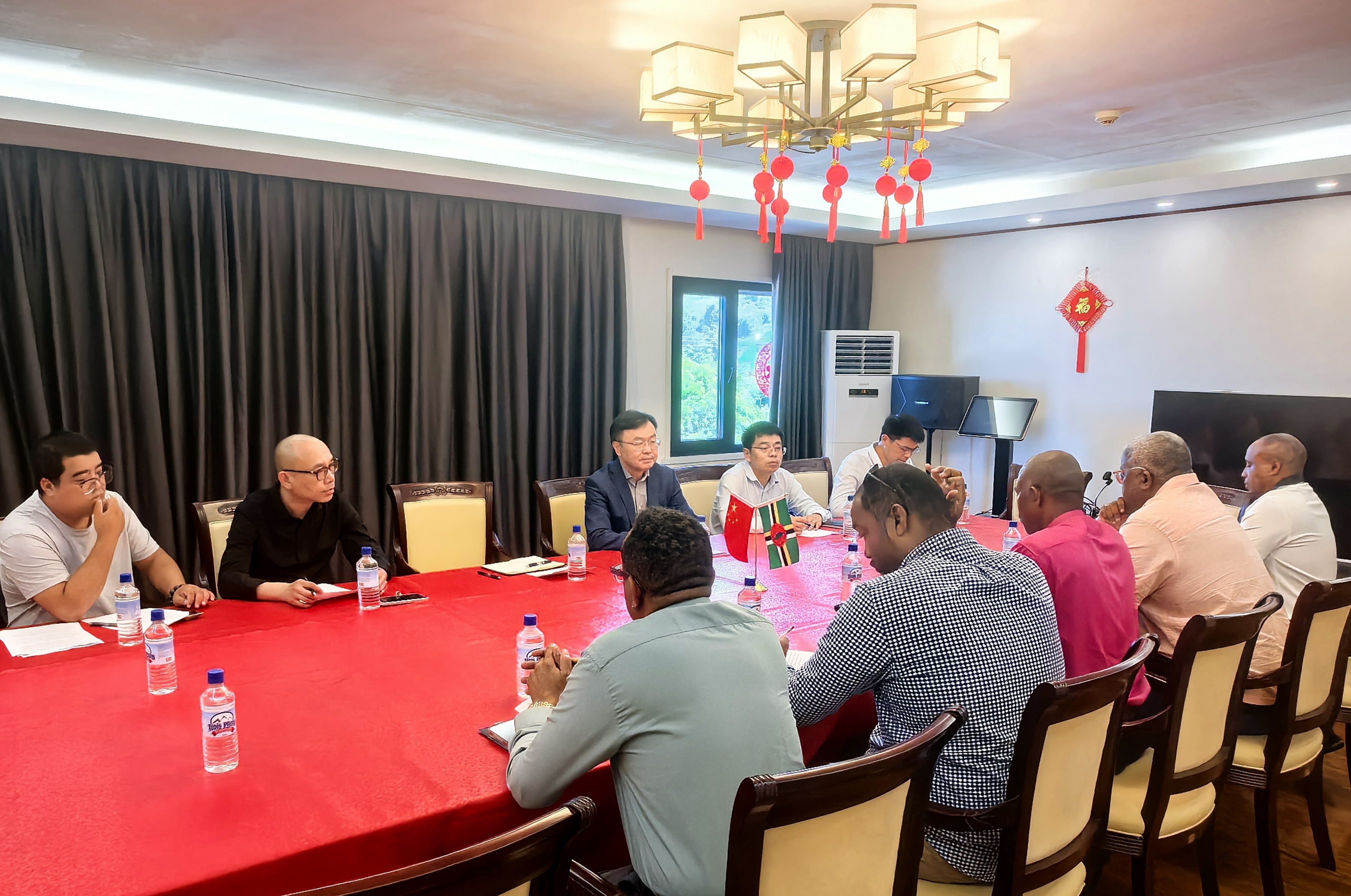 双方围绕项目推进过程中遇到的正式水电接入、办公设备技术规格、安保保障措施和增值税退税等问题进行了深入友好讨论,达成了初步解决方案。双方一致同意继续坚持定期例会制度,确保高质量推进灾后学校重建工作,为多米尼克师生早日搬入新校舍作出积极贡献。
