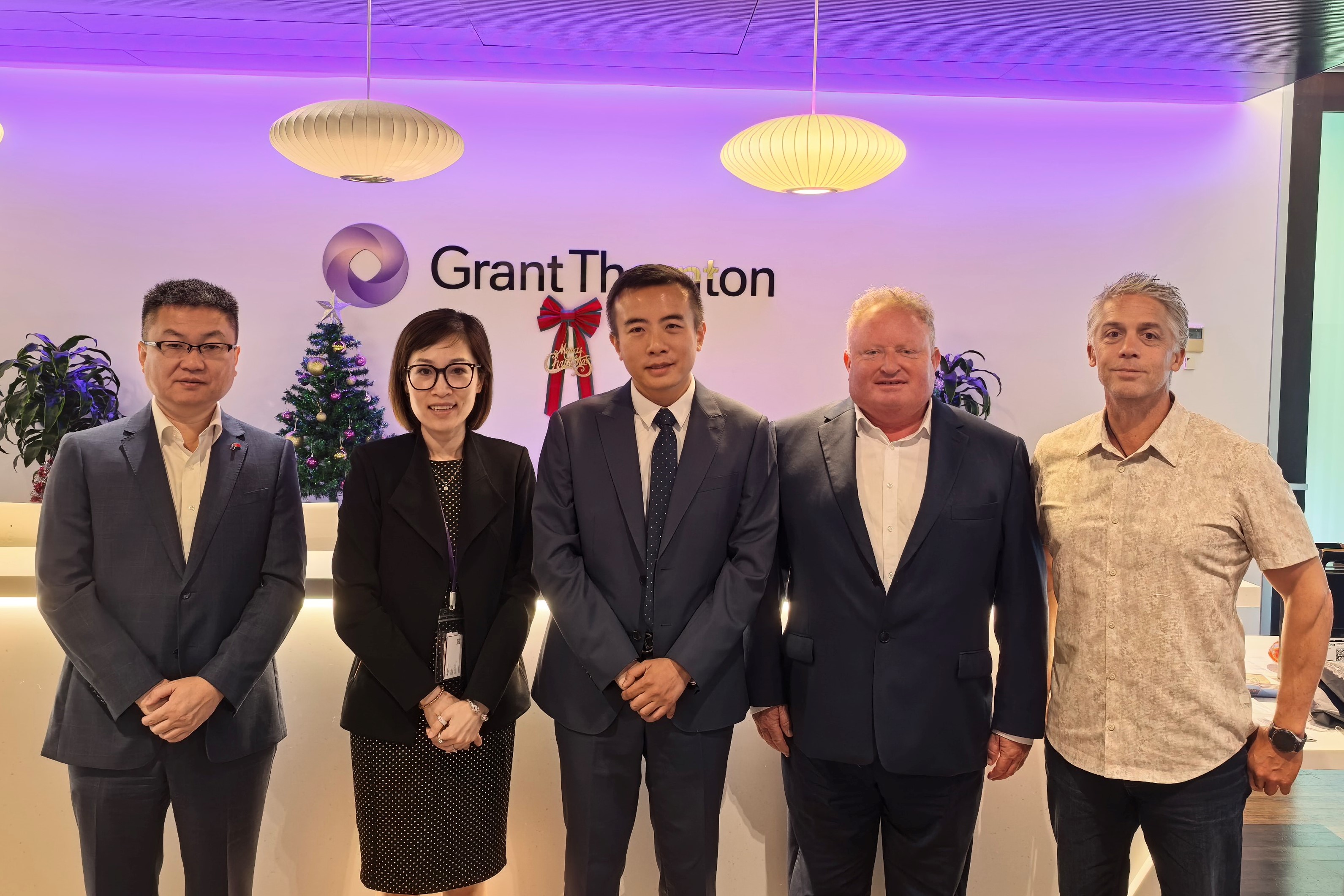 12月11日,驻奥克兰总领馆经商处主任王程光领事、果鹏文领事参访致同新西兰(Grant Thornton New Zealand)会计师事务所,同该所合伙人兼税务主管默里·布鲁尔、合伙人马特·帕金森、亚洲业务总监徐玫姿座谈。