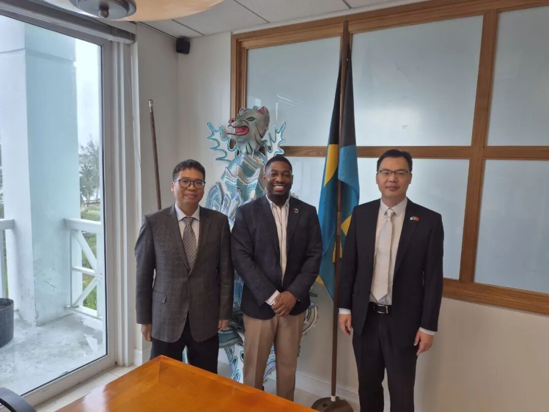 日前,驻巴哈马使馆经商工作负责人周义、李卫军一秘会见巴贸易委员会主席格里芬等。双方就国际经贸形势变化、巴贸易多元化战略、深化中巴经贸关系及人力资源开发与合作等问题深入交换意见。