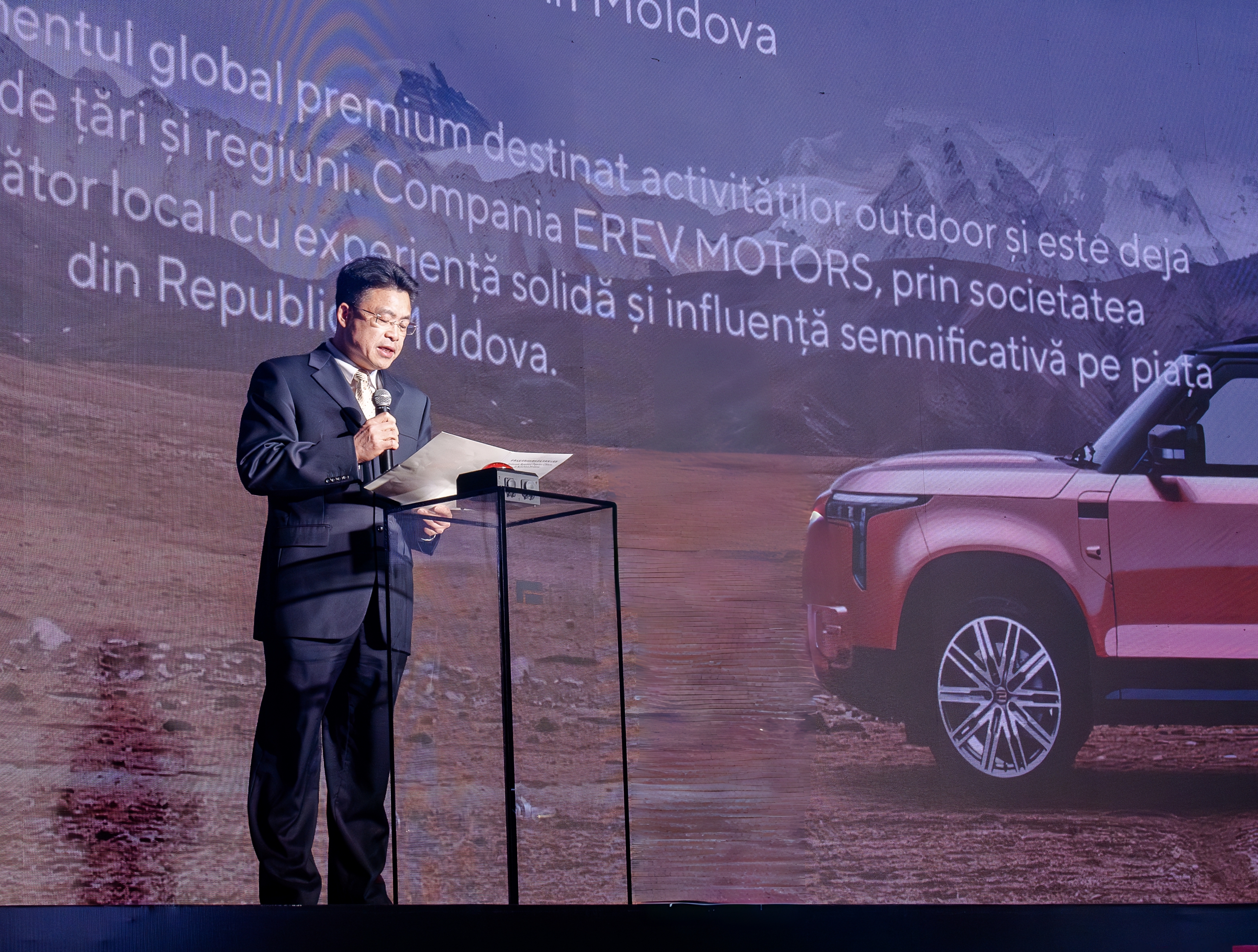 3月26日,驻摩尔多瓦使馆经济商务参赞高锋利出席中国自主生产的极石汽车登陆摩尔多瓦市场品牌发布并授予摩方EREV MOTORS公司官方代理权仪式,极石汽车全球首席运营官吴越一同出席并致辞。