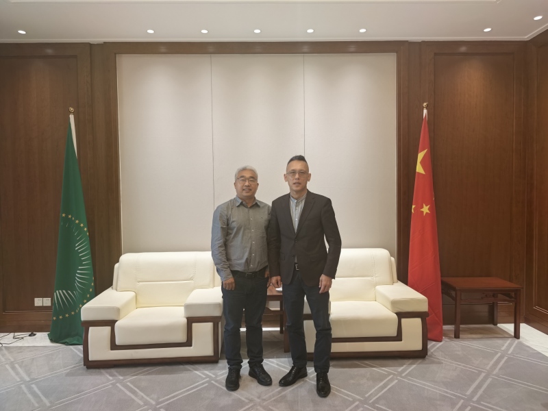 12月9日,驻非盟使团经商处吕瑞浩公参会见埃塞俄比亚多乐食品公司总裁薛光,交流中非农业合作。蒋昌顺参赞在座。