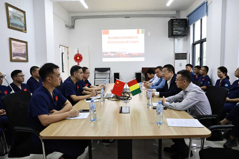 9月24日,孙勇大使赴第31批中国援几内亚医疗队驻地看望慰问医疗队全体队员,就做好援外医疗工作与队员们进行深入交流。