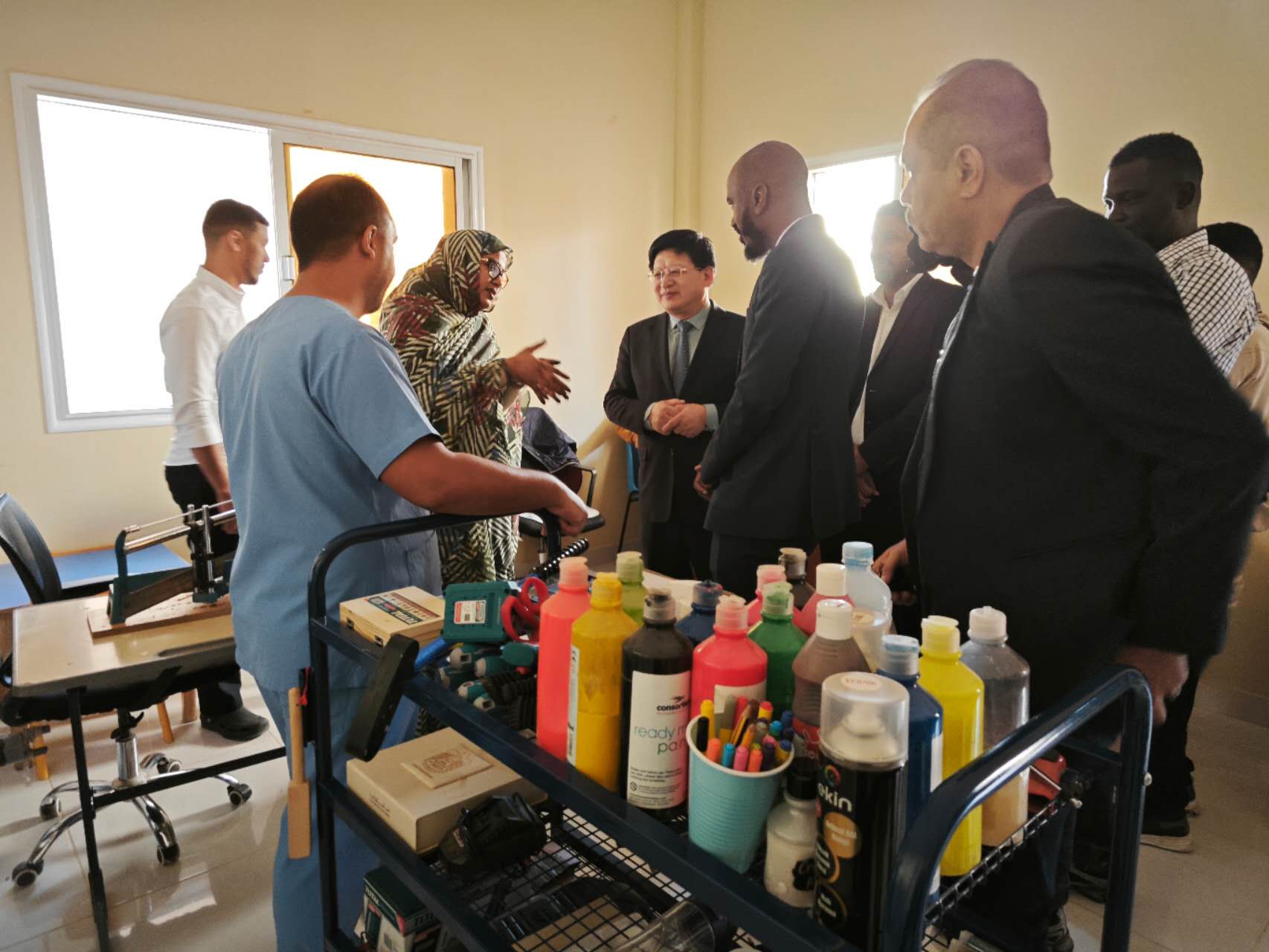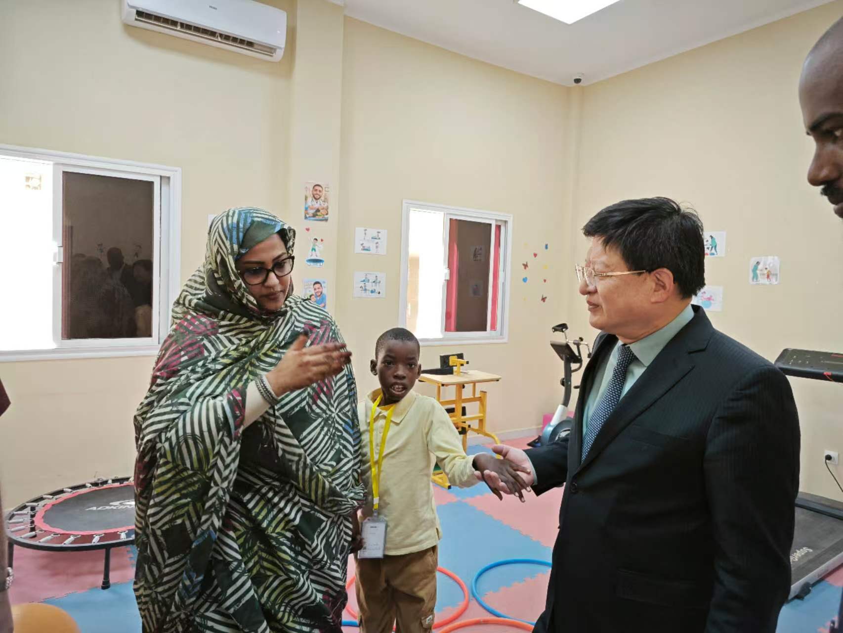 2026年2月12日,驻毛里塔尼亚大使唐中东陪同毛里塔尼亚第一夫人达赫走访扎耶德自闭症儿童中心,就加强两国自闭症儿童关怀及特殊教育领域合作交换意见,使馆邵青公参陪同。