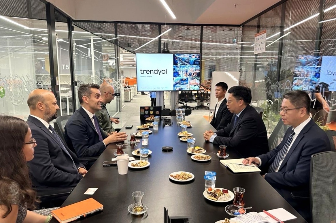 7月17日,驻伊斯坦布尔总领事魏晓东应邀走访土耳其知名电商平台Trendyol研发中心和智慧仓库,并同Trendyol集团执行委员会成员奥赞·阿贾尔、总经理敦达尔·厄兹德米尔、运营经理埃姆拉赫·卡拉贾等深入交流。