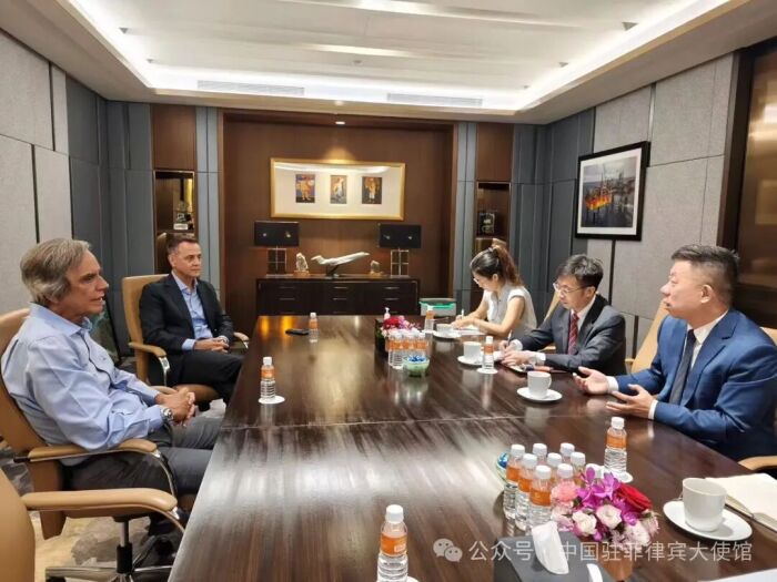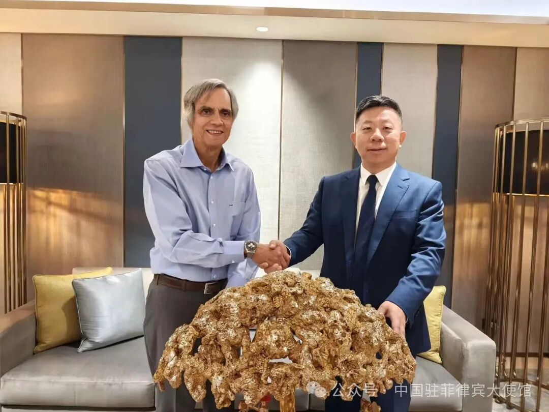 4月22日,中国驻菲律宾大使井泉会见菲国际集装箱码头服务公司董事长兼总裁恩里克·雷宗,双方就中菲经贸投资合作等议题交换意见。