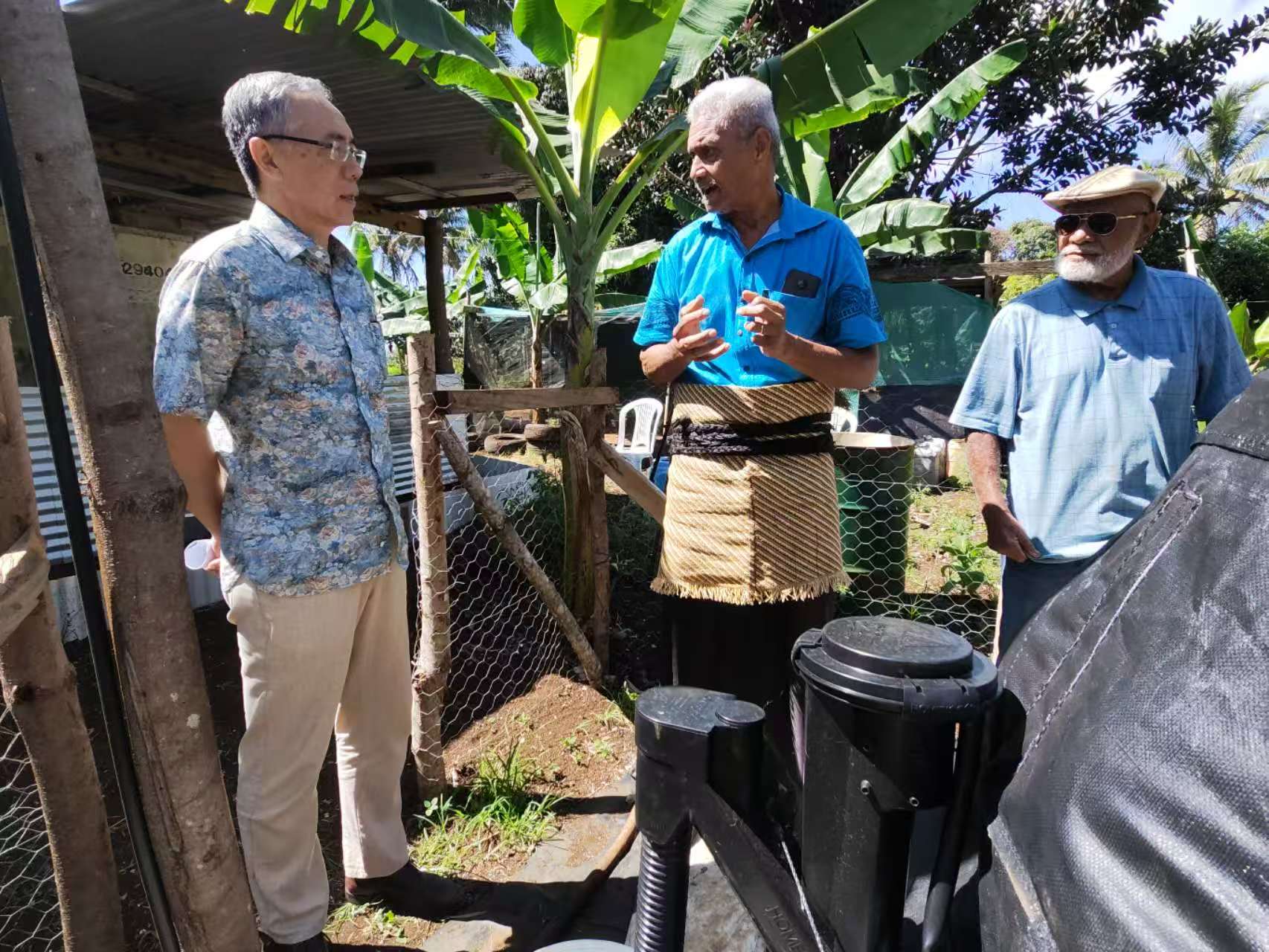 刘为民大使走访汤加农户察看使馆捐赠的家用沼气设备使用情况
