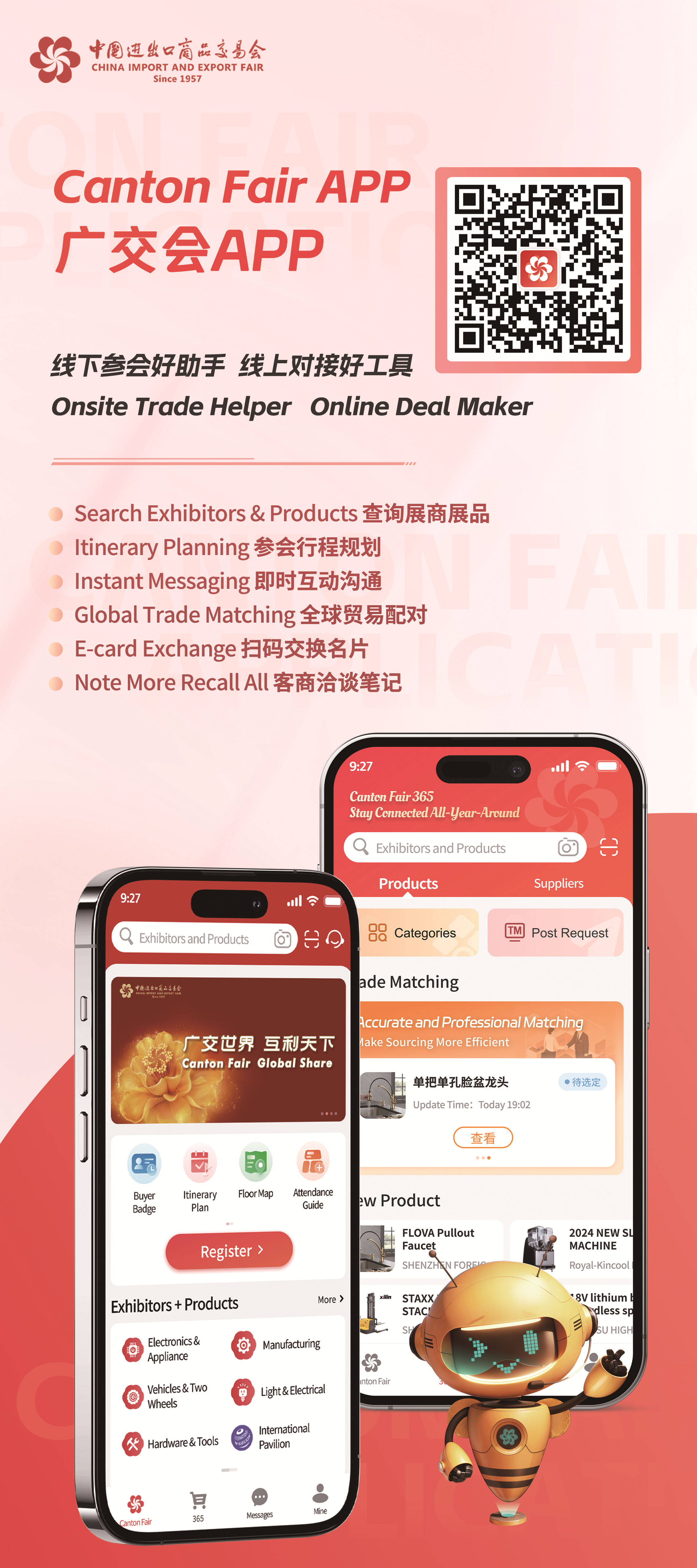 欢迎下载广交会APP,了解最新资讯,获取全新参会体验。